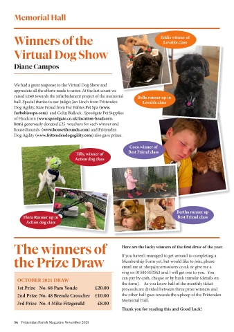 We had a great response to the Virtual Dog Show and made annually, on 21 December, to people in the parish. 2021 please also let a Feoffee know and your name will be